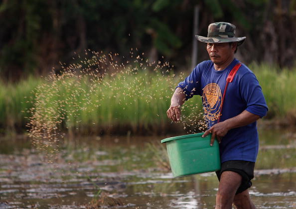 AYUTTHAYA, THAILAND – APRIL 16: Somchai, a rice farmer, throws rice seeds onto his field April 16, 2008 in Ayutthaya, Thailand. Fears of a looming rice shortage were heightened today as rice prices climbed to record highs on the back of rising demand, export bans and bad weather delaying planting in the US. Asian prices have soared even more sharply as big importers have rushed to build stocks on fears supplies will become scarce as exporters clamp down on shipments. (Photo Paula Bronstein/Getty Images)